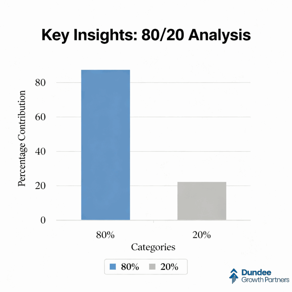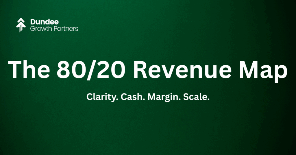 At Dundee Growth Partners, we built the 80/20 Revenue Map to stop the bleeding, sharpen focus, and scale around what actually works.